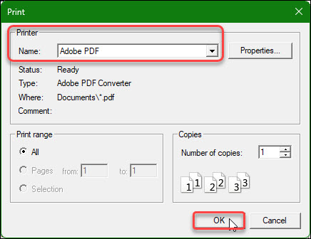 We continue and print the schedule to Adobe PDF, Figure 13.
